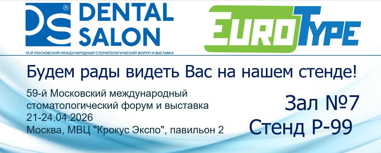 Приглашаем Вас посетить стенд компании EuroType в рамках грядущей выставки «ДЕНТАЛ САЛОН 2026», которая пройдет с 21.04.2026 по 24.04.2026! Ждем Вас на нашем стенде!